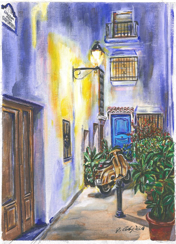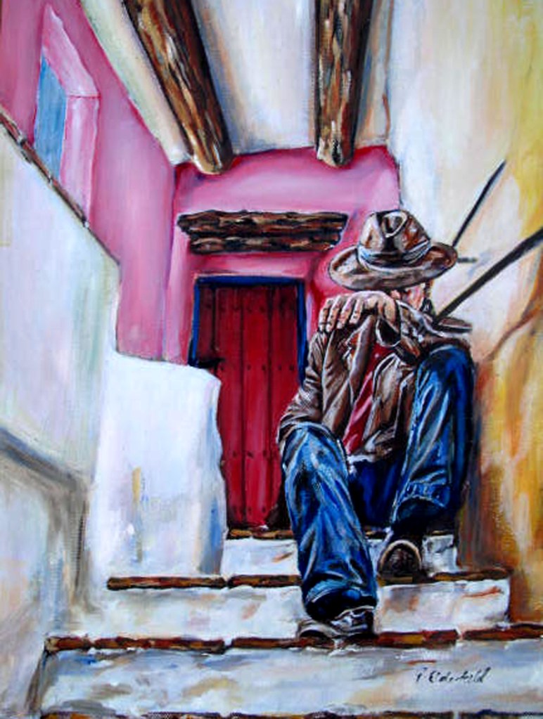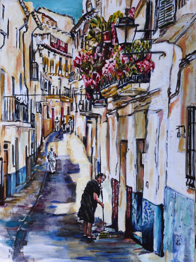 I have been resident in Spain since 2010, in Alhama de Granada, an historical picturesque town in Granada province. The works I create here from my studio are primarily based on the local surrounding areas and characters that inhabit them.